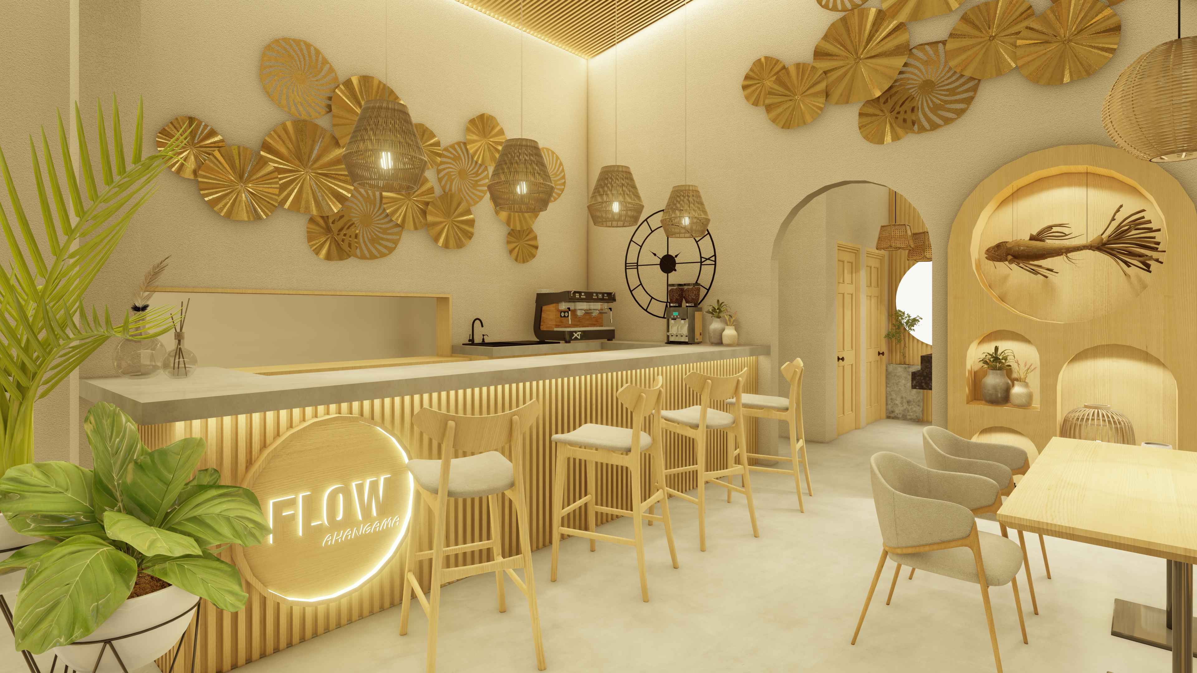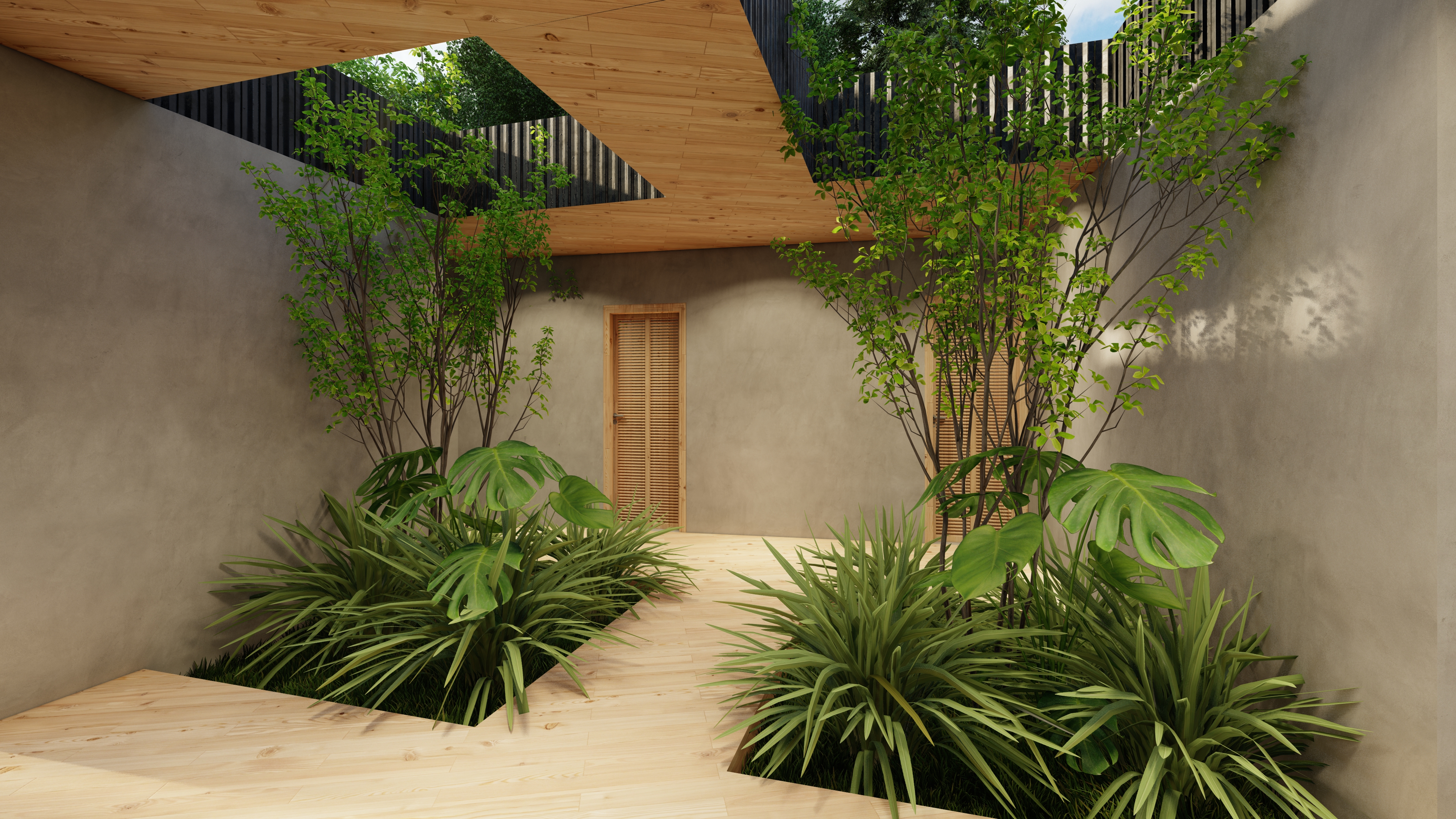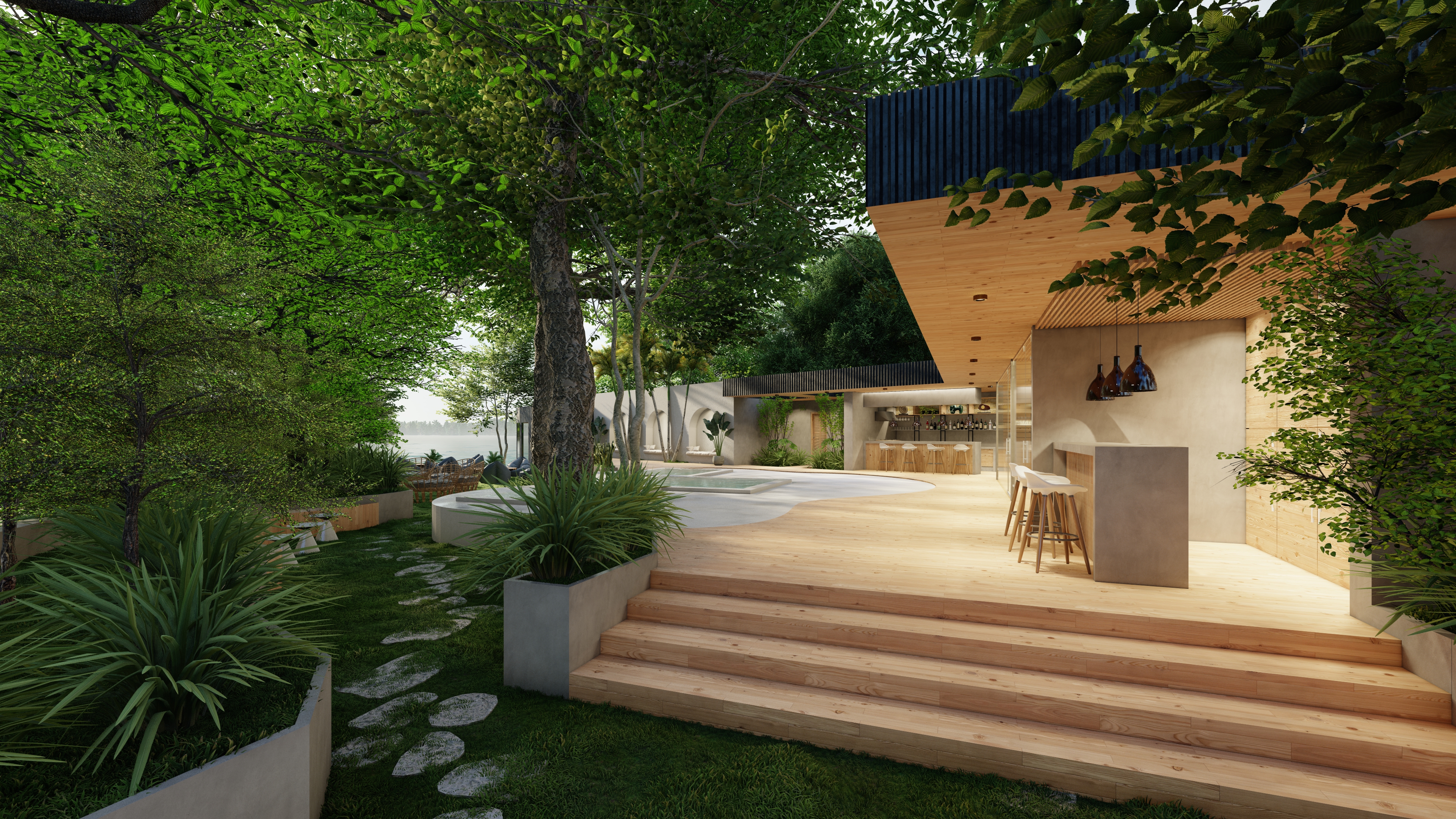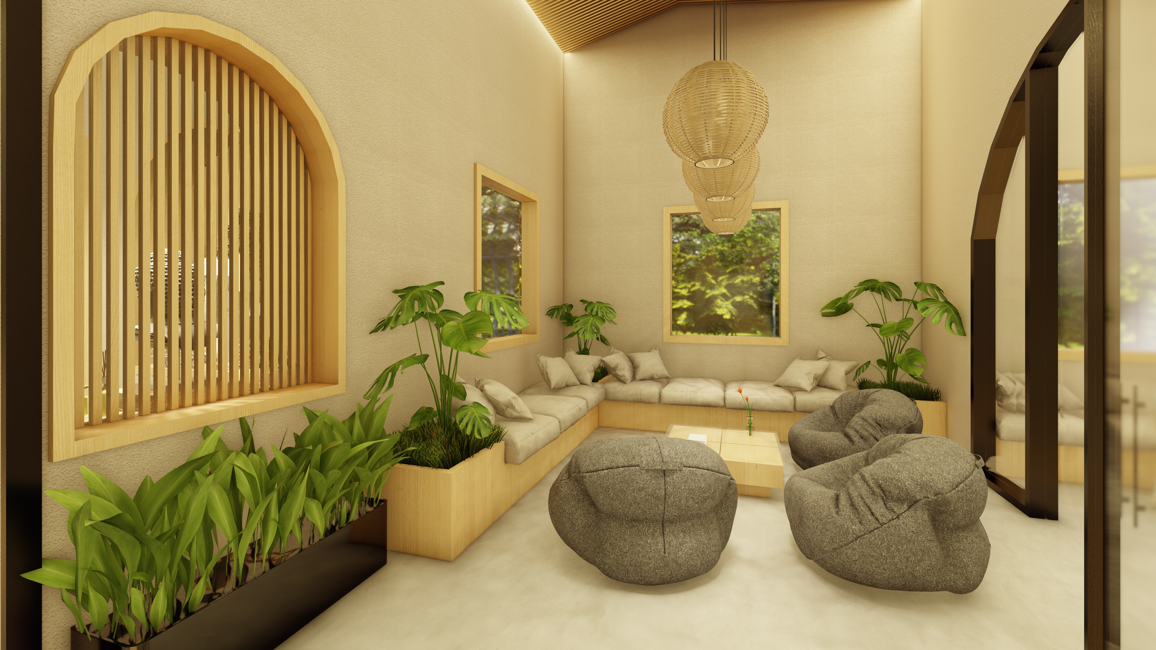 Another major challenge was preserving the architectural language of Ahangama. The pathway from the road to the sauna was reinterpreted as an extension of the lake edge, allowing the waterline to guide the spatial experience of the project. Living elements and activity zones were introduced along this path to activate the landscape and create a vibrant connection between people, architecture, and nature.