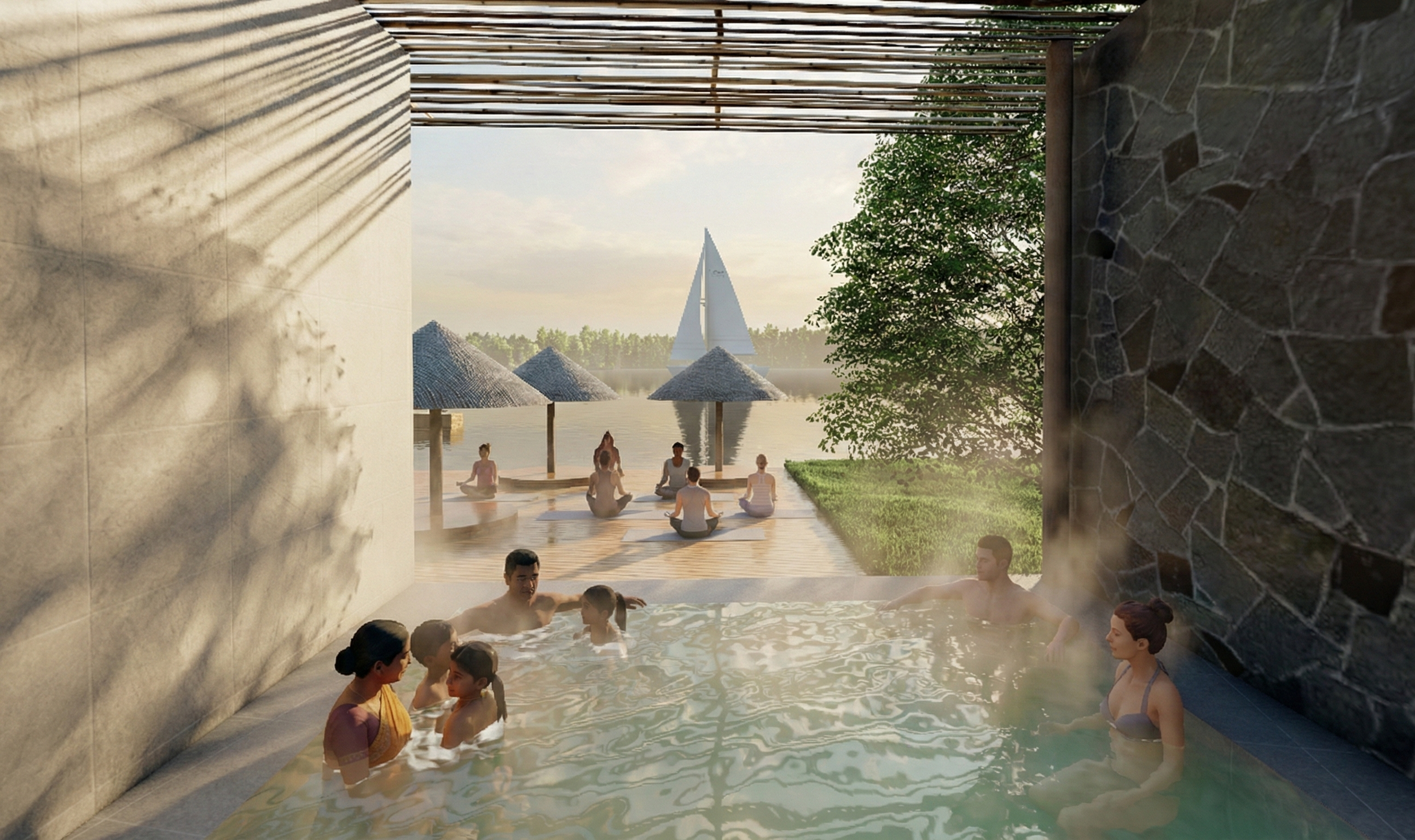 Every architectural and landscape element was carefully considered to create a balanced and enriching living environment. The township integrates a range of amenities including swimming pools, restaurants, yoga huts, open-air gyms, herbal baths, private jogging tracks, cycling paths, and various communal spaces. These features are thoughtfully distributed to encourage physical wellbeing, social interaction, and a strong sense of community.